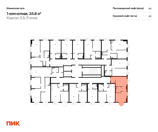 Продаётся 1-комн.квартира площадью 34.80 кв.м на 5 этаже 9 этажного дома (Корпус 3.5, секция 1) проекта ПИК Ильинские луга. Светлый просторный подъезд на уровне земли, функциональная планировка, большие окна, с отделкой.