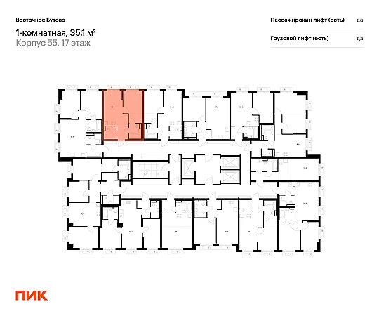 Продаётся 1-комн.квартира площадью 35.10 кв.м на 17 этаже 25 этажного дома (Корпус 55, секция 1) проекта ПИК Восточное Бутово. Светлый просторный подъезд на уровне земли, функциональная планировка, большие окна, с отделкой.