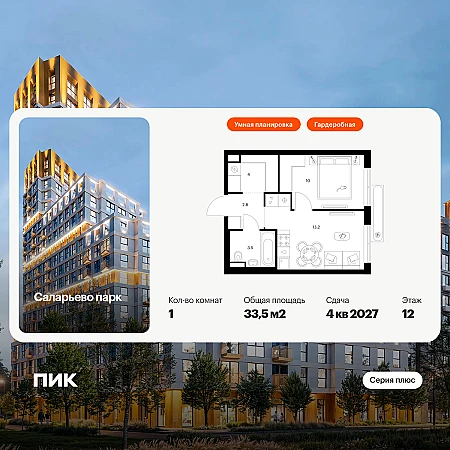 Купить 1к квартиру 33 м² в ЖК Саларьево парк