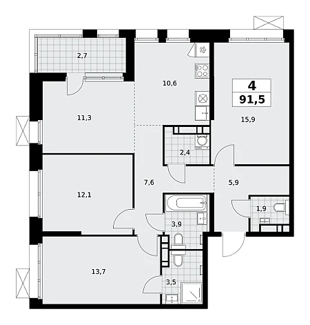 Купить 3к квартиру 93 м² в ЖК Скандинавия