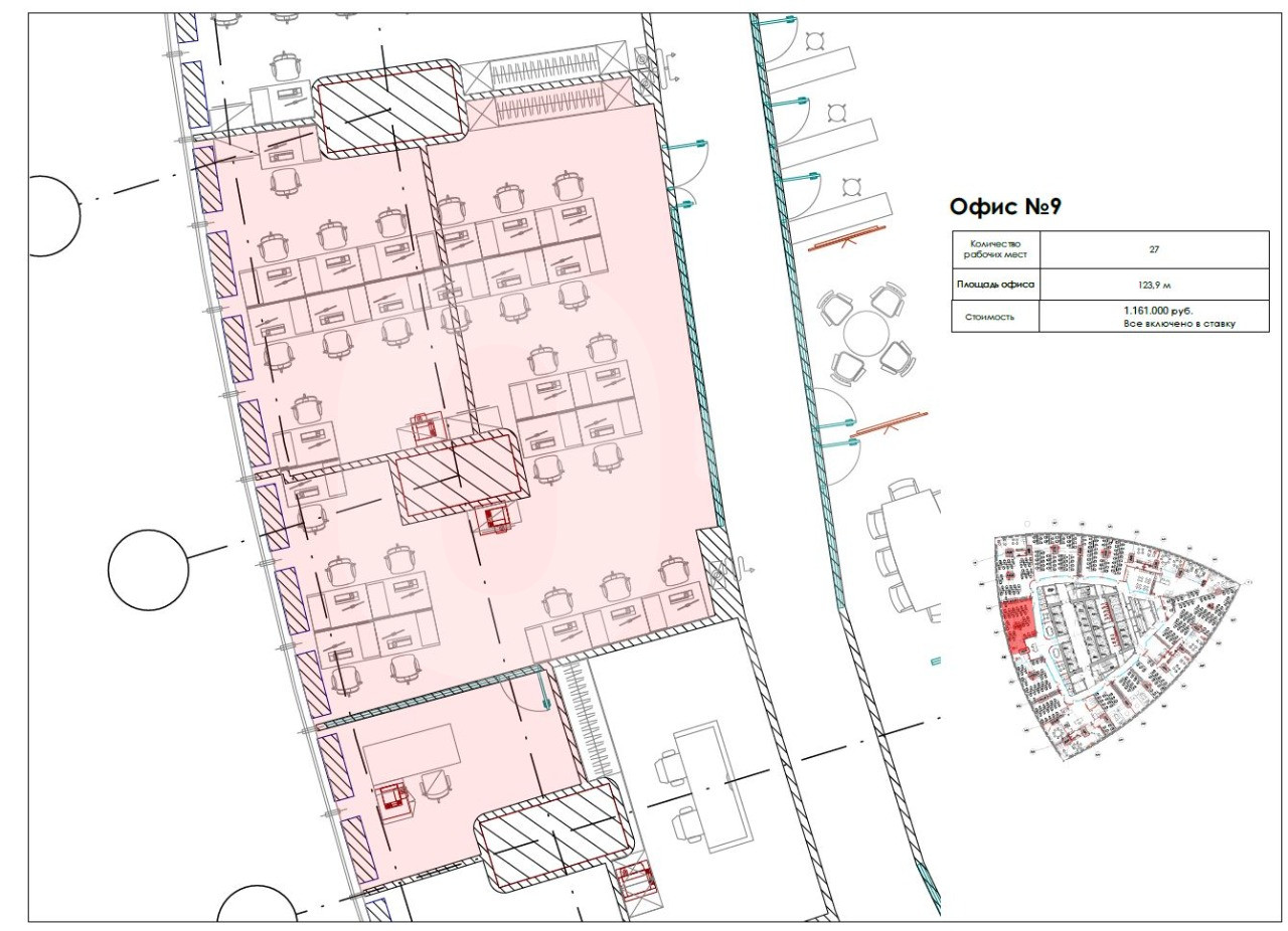 *Количество рабочих мест рассчитано автоматически: от 4,5 м2 на человека до 8 м2 на человека.