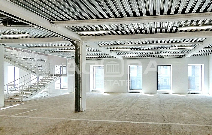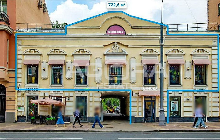 Площадь 722,6 кв. м, вход на 1-м этаже. Три уровня: 1 этаж - 18,7 м2; 2 этаж - 351,8 кв.м; 3 этаж - 352,1 кв.м.