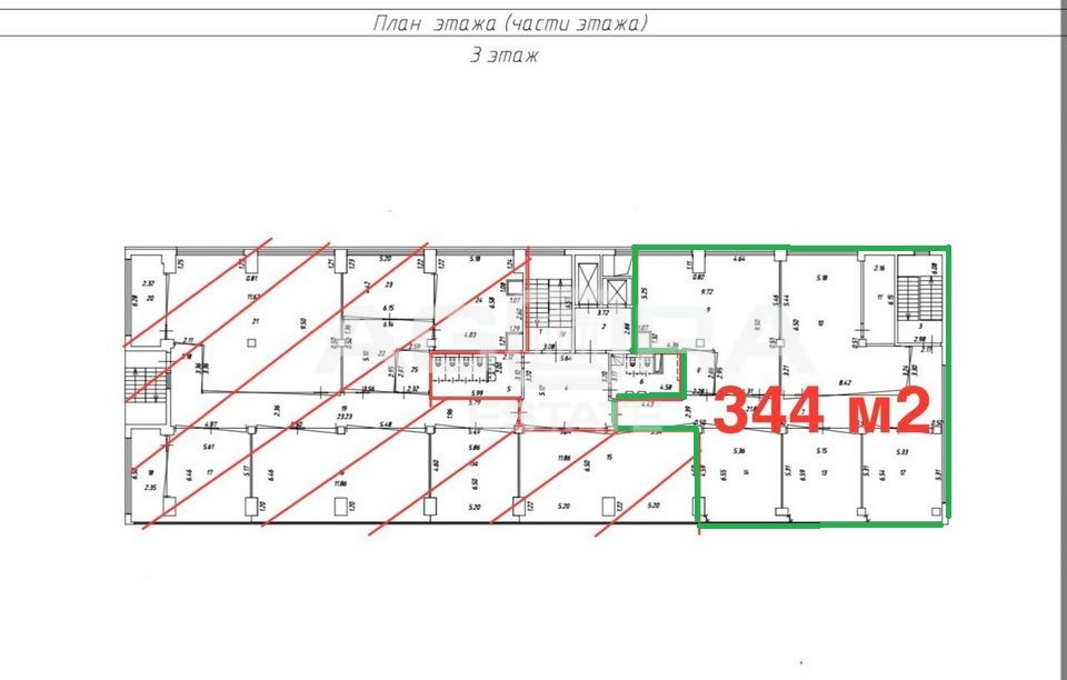 Площадь 344 кв.м, 3-й этаж 5-ти этажного офисного здания.