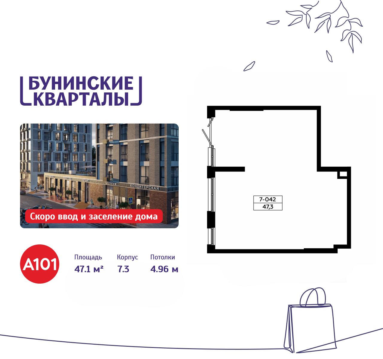 Снять торговое помещение 47 м² в ЖК Бунинские кварталы