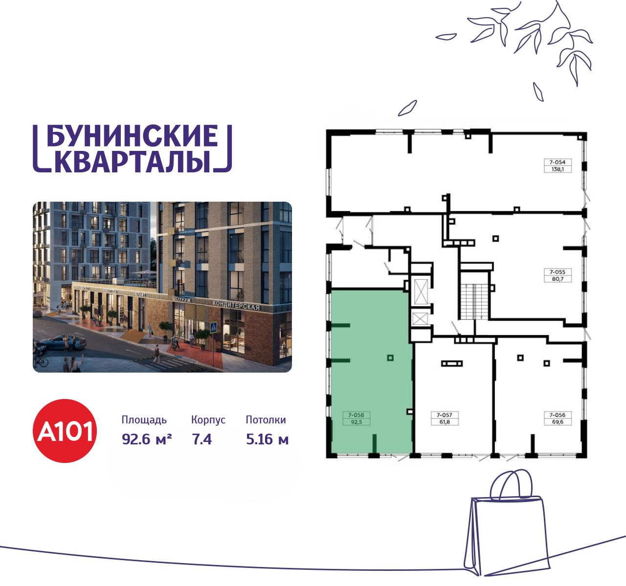 Свободные помещения в ЖК Бунинские кварталы