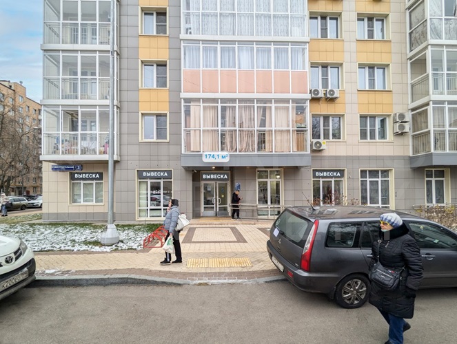 Помещение находится практически на углу дома и хорошо просматривается со стороны Краснобогатырской улицы и со стороны ЖК Наследие.