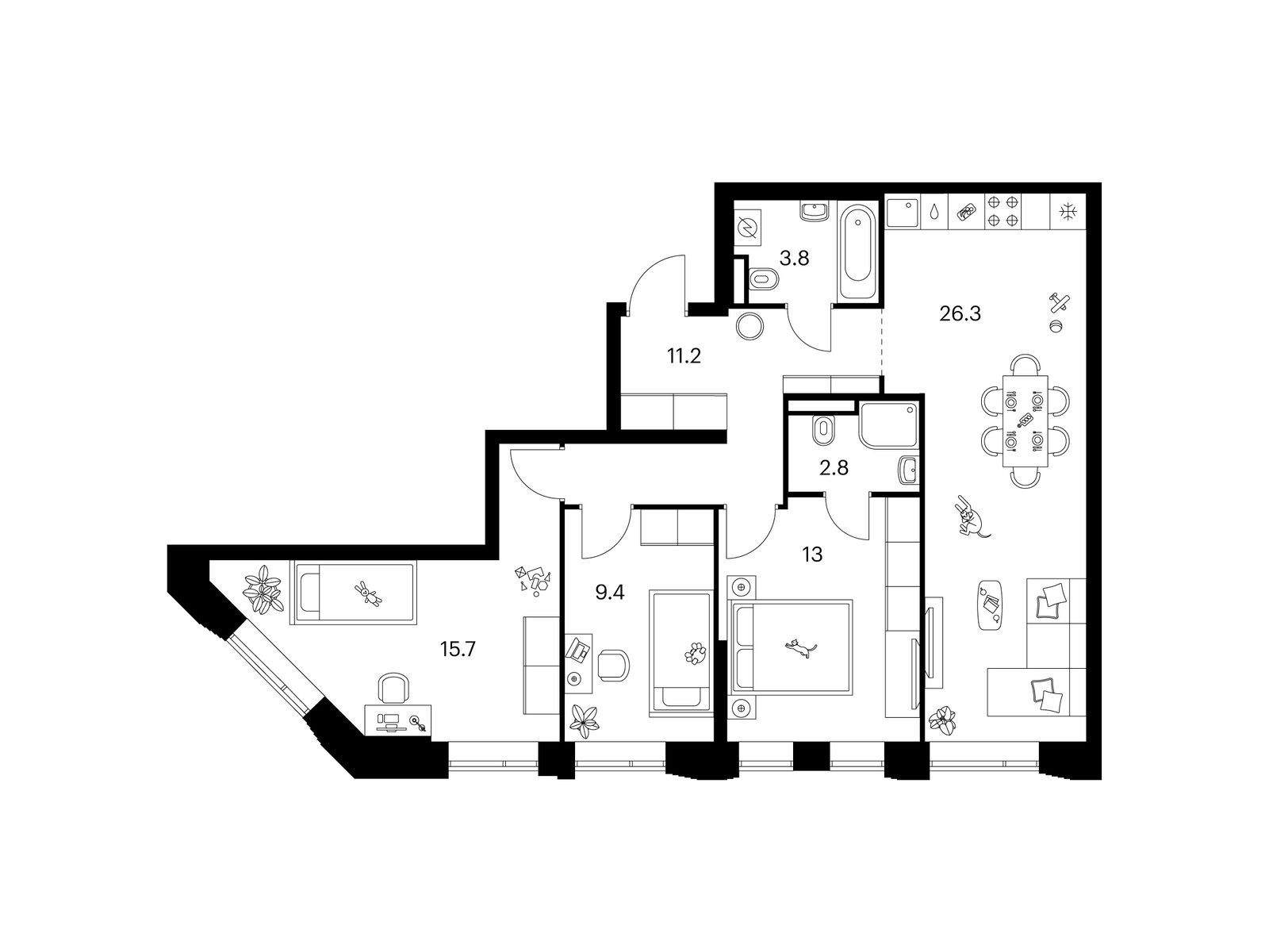 В проекте широкий выбор планировок: от компактных и продуманных студий до просторных трёхкомнатных квартир для большой семьи. Есть удобные форматы с кухней-гостиной, гардеробной и двумя санузлами. Для ценителей простора и обилия солнечного света мы предусмотрели угловые окна и балконы. А с верхних этажей откроется впечатляющий вид на Медведковский заказник, Останкинскую башню и Москва-Сити. Артикул - 875818
