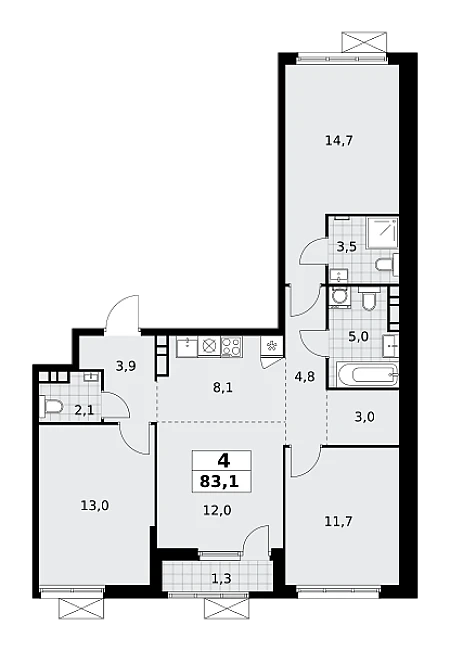 Купить 3к квартиру 88 м² в ЖК Дзен-кварталы