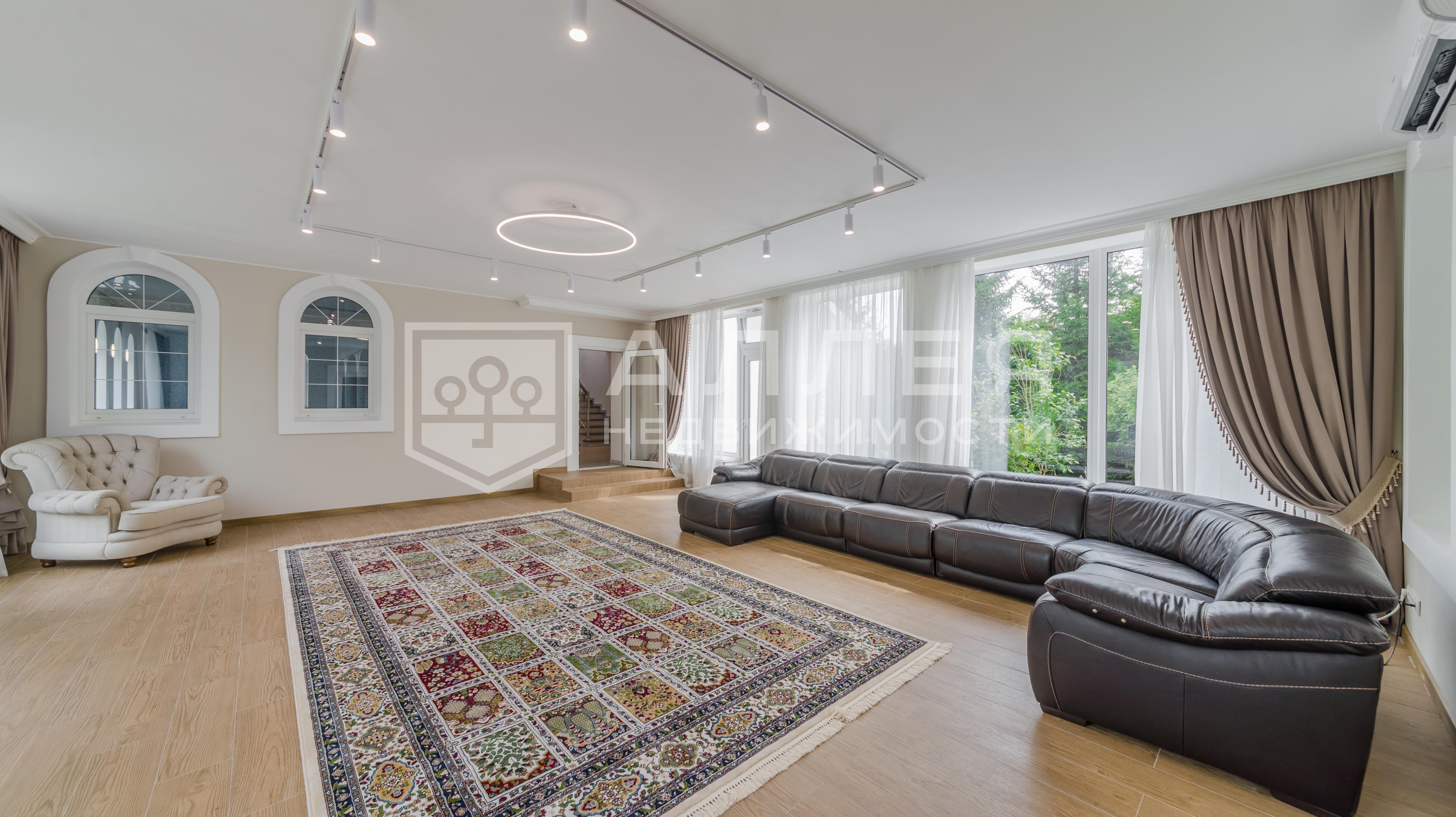 Новый дом с бассейном. Сделана современная удобная планировка. Есть спальня на первом этаже для гостей или родителей. Гостиная более 100кв.м с удобным зонированием и дровяным мраморным камином. В доме большая площадь остекления и много света. В мастер - спальне свой отдельный санузел. В кухне дополнительное помещение хранения. В зоне отдыха бассейн, сауна, бильярдная с русским бильярдом 12 футов, теннисная, массажная комната, 5 спален и 5 санузлов. Есть отдельный блок для персонала. В отделке использованы дорогие материалы. На полу паркетная доска. Установлена итальянская кухня и сантехника, теплые полы, кондиционеры, видеонаблюдение. В каждой комнате система увлажнения. Дом полностью меблирован и готов к проживанию, заведен мощный интернет и спутниковое ТВ.