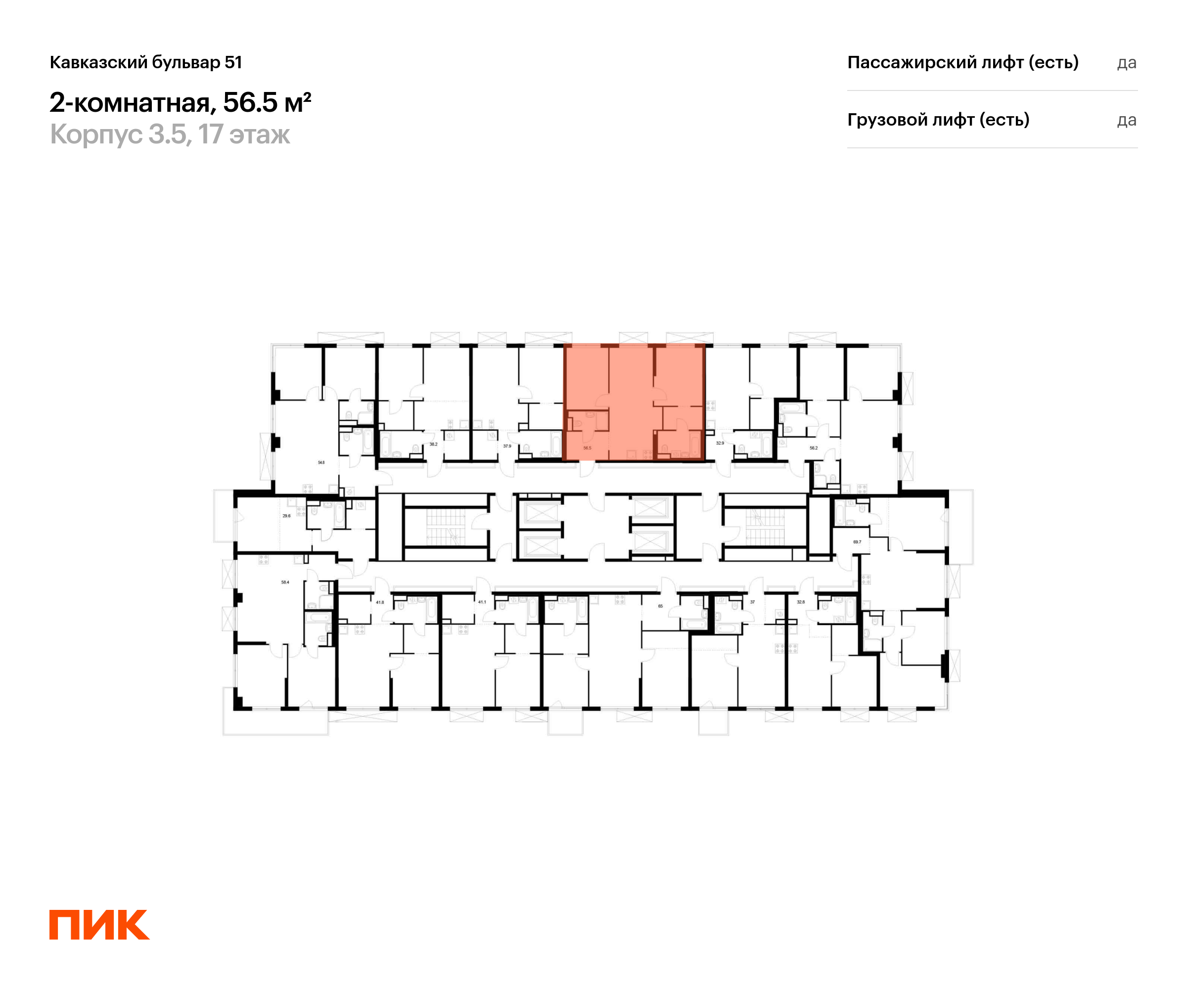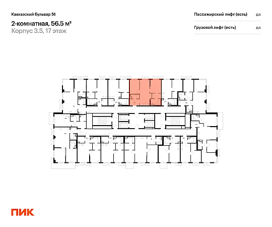 Продаётся 2-комн.квартира площадью 56.50 кв.м на 17 этаже 24 этажного дома (Корпус 3.5, секция 2) проекта ПИК Кавказский бульвар 51. Светлый просторный подъезд на уровне земли, функциональная планировка, большие окна, с отделкой.