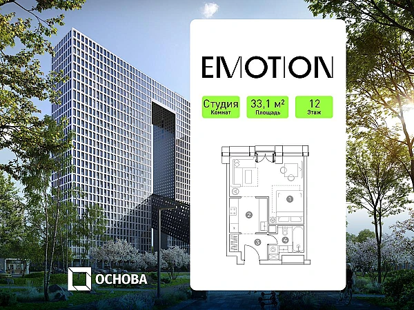 Продается студия площадью 33.1 кв.м. на 12-м этаже 28 этажного дома в "Emotion" от ГК ОСНОВА