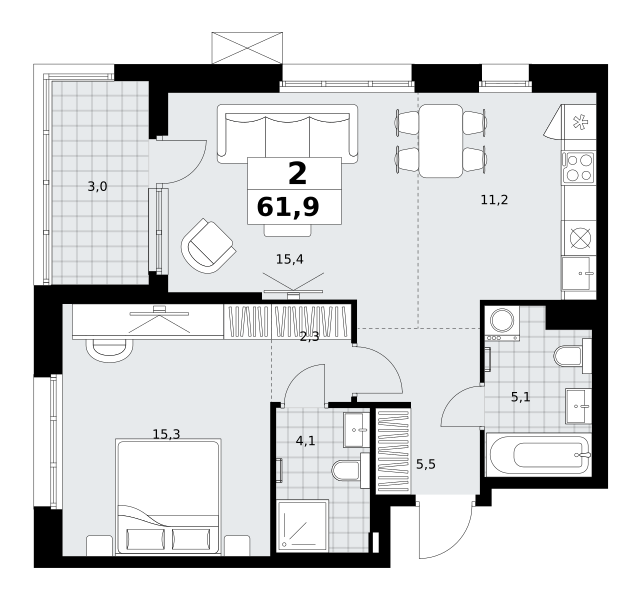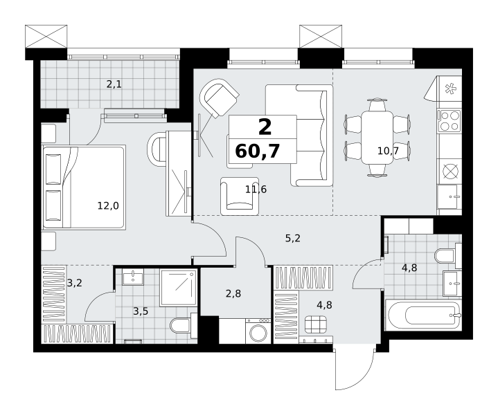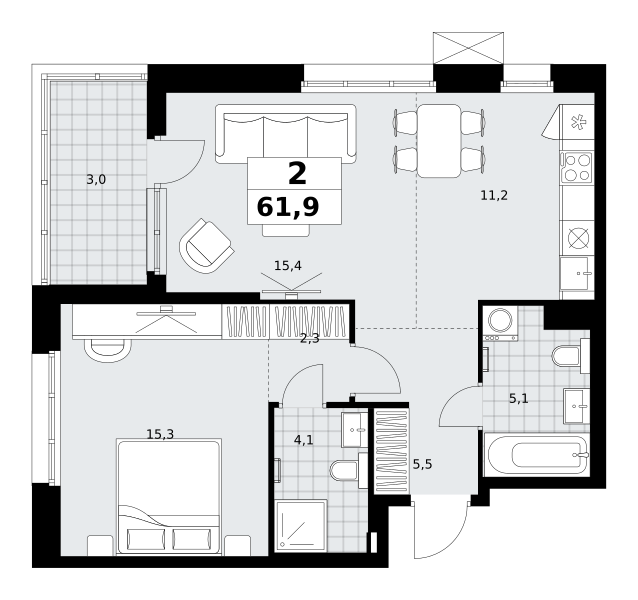 Стадия строительства — монолит готов, высокая стадия готовности, сдача в 2027 году. Проект также подходит под инвестиционные сценарии. Предусмотрена временная регистрация.