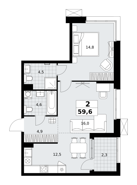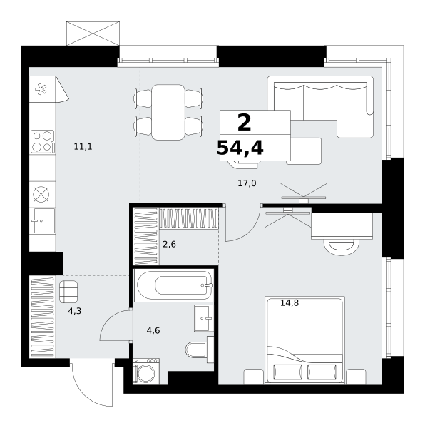 Продаются 2-к апартаменты площадью 47.1 кв.м. на 11-м этаже 28 этажного дома в "ЭМОУШН" от ГК ОСНОВА