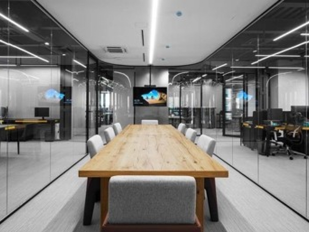 . Пятиэтажное здание с цоколем. - 100 м² приватная терраса с видом на центр Москвы. - Панорамное остекление, дизайнерская отделка. - Лобби, event‑зона, переговорные, open space, кабинеты руководства. - Кофе‑зоны, кухни, медиа‑пространство, Skype‑будки, ресепшен, современная мебель. - Высота потолков 3,4 м. - Мощность 220 кВт. - Современные системы вентиляции и кондиционирования, противопожарная безопасность.