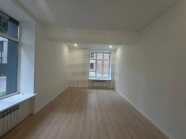 На стенах поклеены обои под покраску, на полу постелен ламинат с плинтусами и откосами. Есть вытяжная вентиляция в санузле и на кухне, выходы хв/гв, место под раковину на кухне. Кроме того, в помещениях уже есть выключатели освещения, розетки для бытовой техники и роутера, а также сделаны закладные для оптоволокна для интернета.