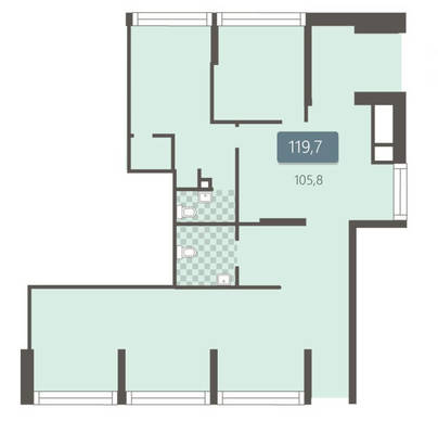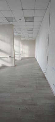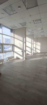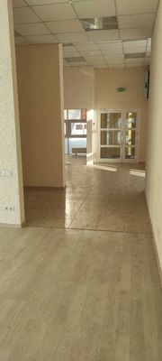 В помещении выполнен офисный ремонт - на полу ламинат, стены - обои под покраску, два с/у в плитке.