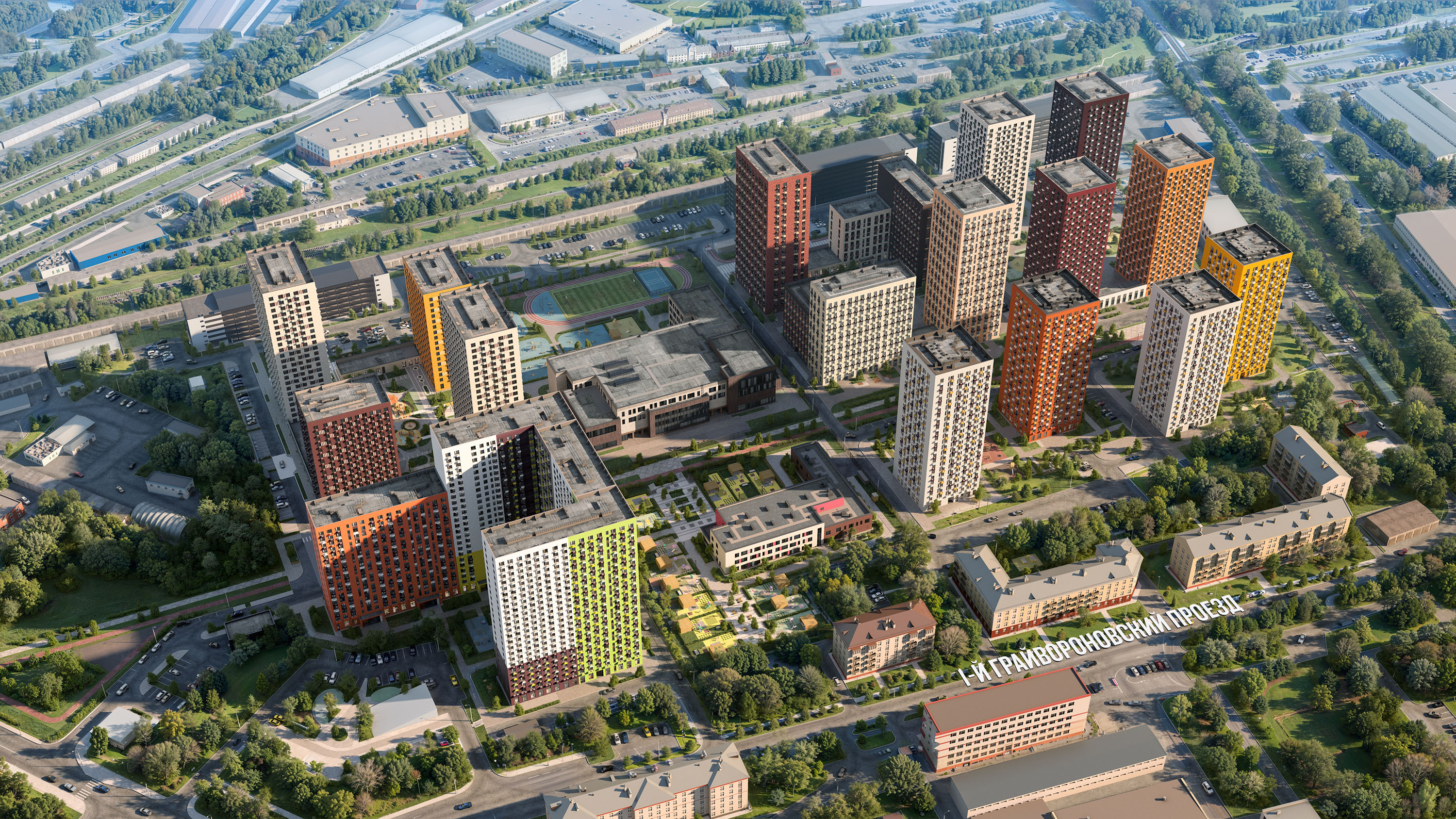 В проекте 15 жилых домов, детский сад, школа, подземные и надземные паркинги. Вокруг — обжитый район, где есть всё для комфортной жизни: удобный транспорт, детские сады, школы, поликлиники, магазины, кинотеатры и фитнес-клубы. Рядом есть места для отдыха и прогулок — парки, бульвары и пруды. А для любителей спорта — большой спортивный комплекс «Москвич» с бассейном, ледовым катком и большим количеством взрослых и детских секций.