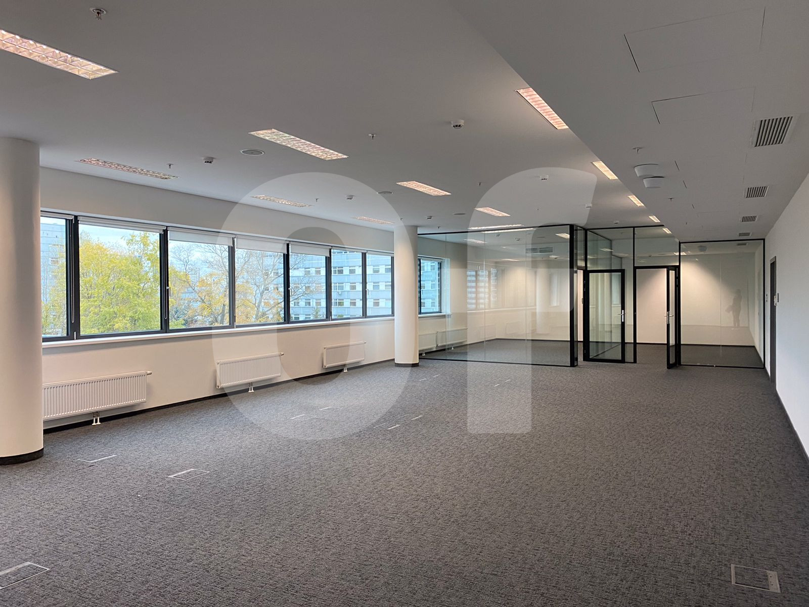 Офис имеет смешанную планировку, которая оптимально подходит для организации рабочих кабинетов и open-space зон. Благодаря шагу колонн 7x7.6 м обеспечивается максимально эффективное использование площади. В здании оборудованы современные лифты.