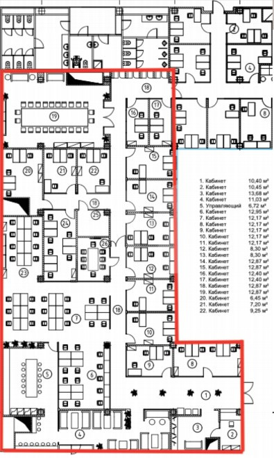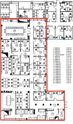 *Количество рабочих мест рассчитано автоматически: от 4,5 м2 на человека до 8 м2 на человека.