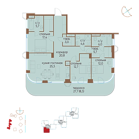 Стоимость квартиры со скидкой 8% при 100% оплате 85511700 руб.