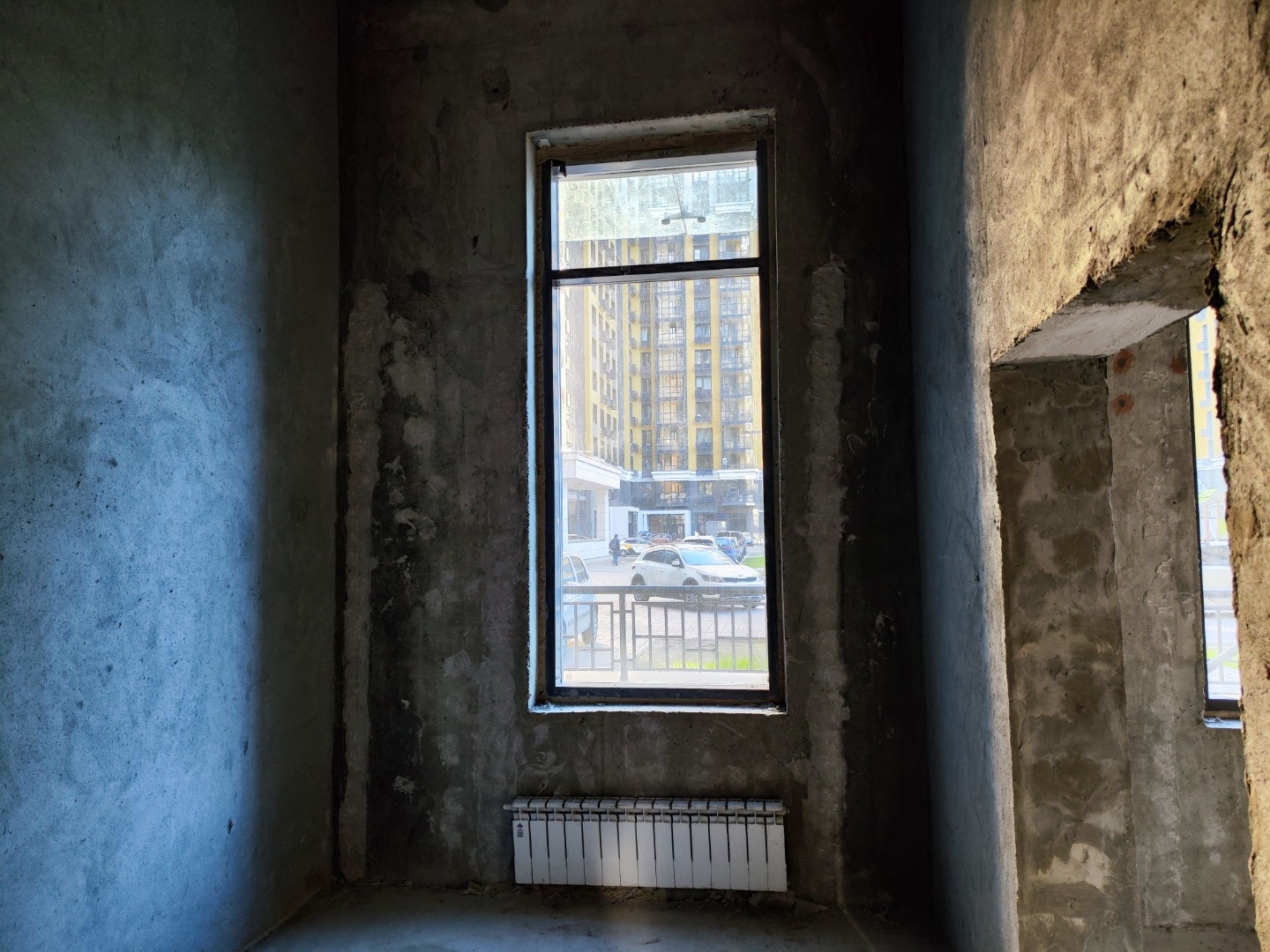 Объект в новом монолитном доме. Большие витражные окна, высокие потолки