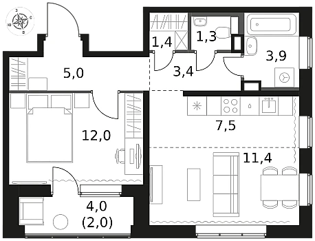Покупателю остаётся мебель и техника (по договорённости).