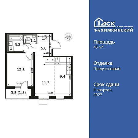 Светлая и уютная квартира полностью готова к проживанию.