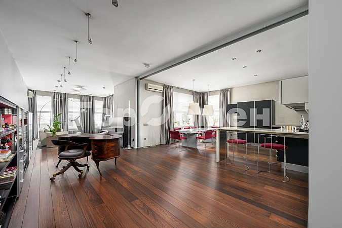 Высококачественный ремонт. Вся мебель из Италии от Ceccoti и Minotti, системы хранения Porro, фортепиано Sauter, знаменитый торшер Arco братьев Кастильони от Flos.