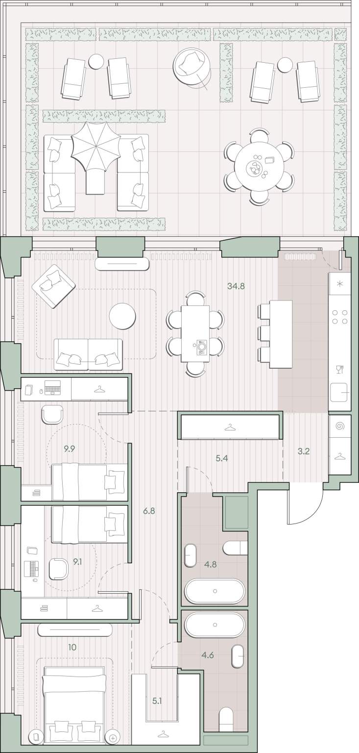 Редкое предложение. Эксклюзивная трехкомнатная квартира, проект архитектурной студии ASASH Андрея Шмонькина, члена Союза художников.
