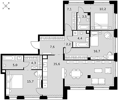 Главная Купить квартиру в Москве и МО 3к квартира 118 м² в ЖК Остров
