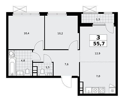 Купить 3к квартиру 65 м² в ЖК Level Нижегородская