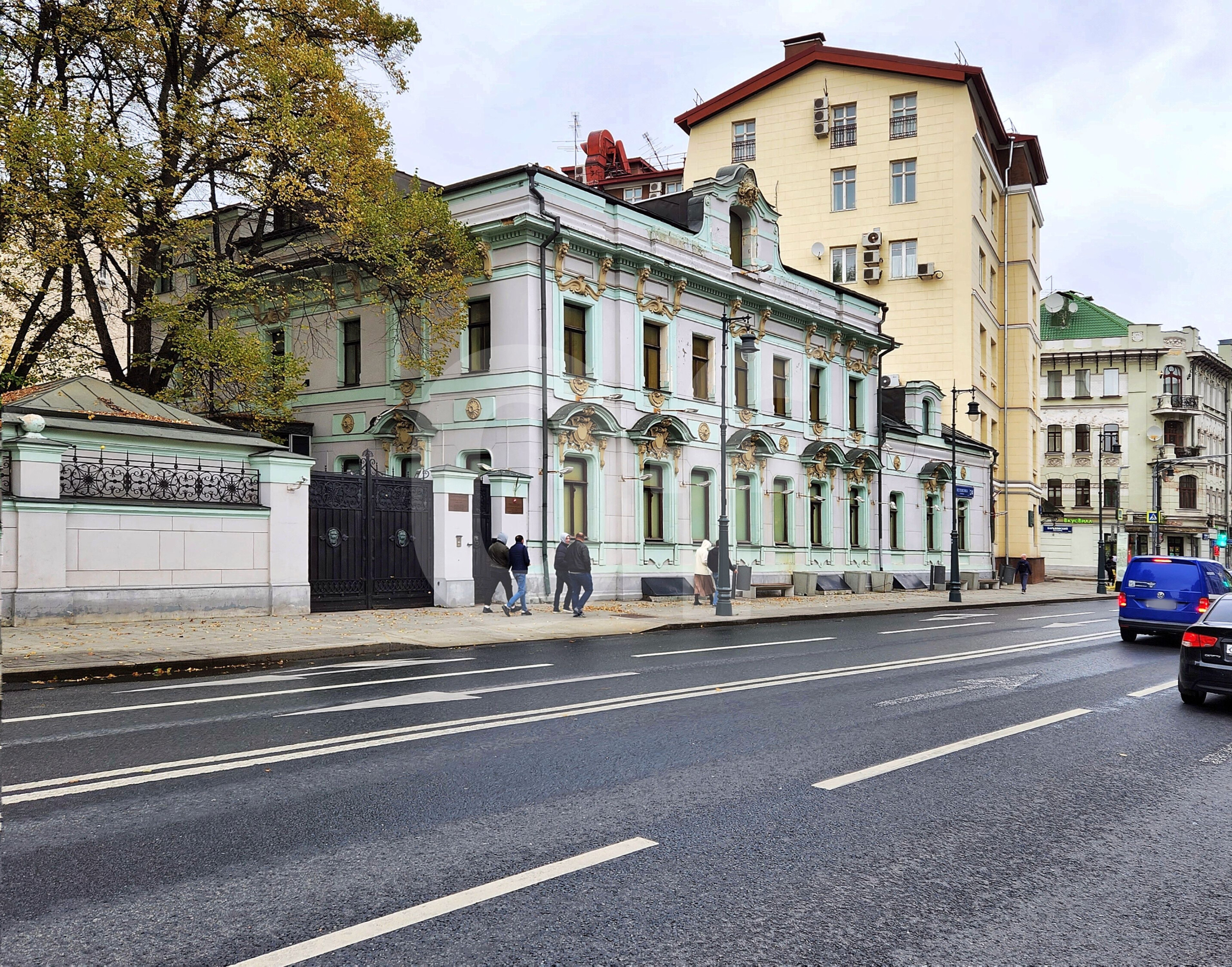 В непосредственной близости находятся остановки наземного городского транспорта. Рядом с особняком находятся улицы Пречистенка, Волхонка, Гоголевский, Смоленский и Зубовский бульвары. Есть удобные выезды на Бульварное и Садовое кольцо.