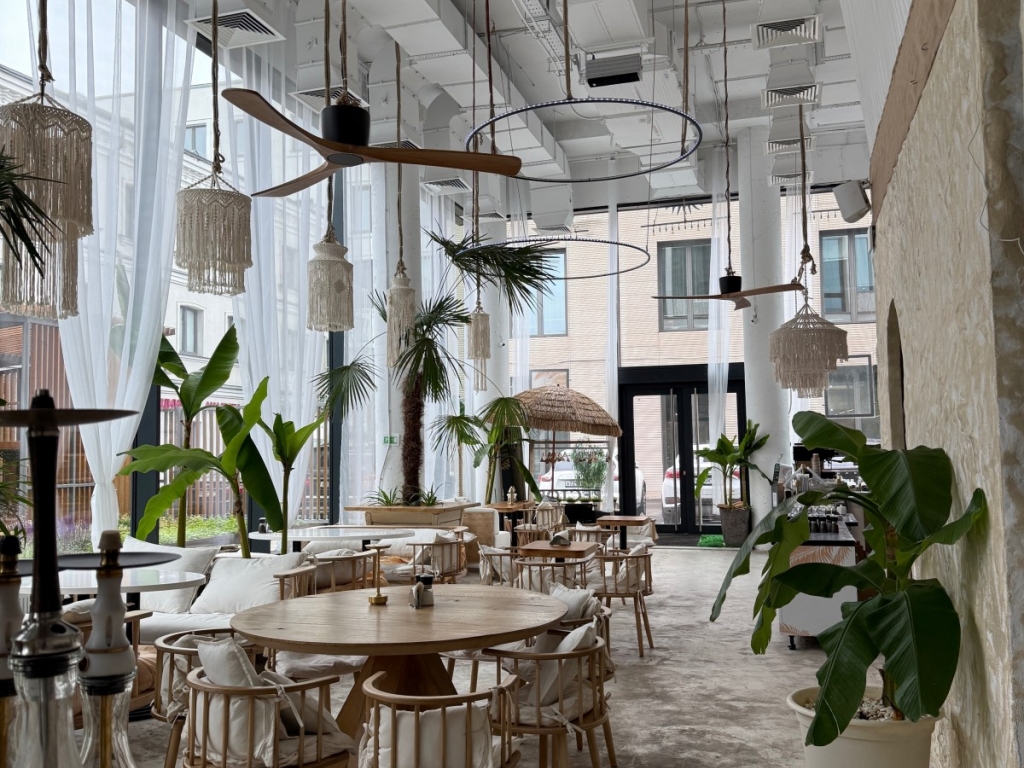 Витринные панорамные окна в пол, высота 7 м. Есть технологическая вентиляция (отдельная труба на крышу)* Электрическая мощность 64 к. вт. Отдельный вход с улицы. Согласована веранда на 114 кв. м. Всю мебель и оборудование на фото можно приобрести у предыдущего арендатора. В помещении остается вся разводка по технологической вентиляции.