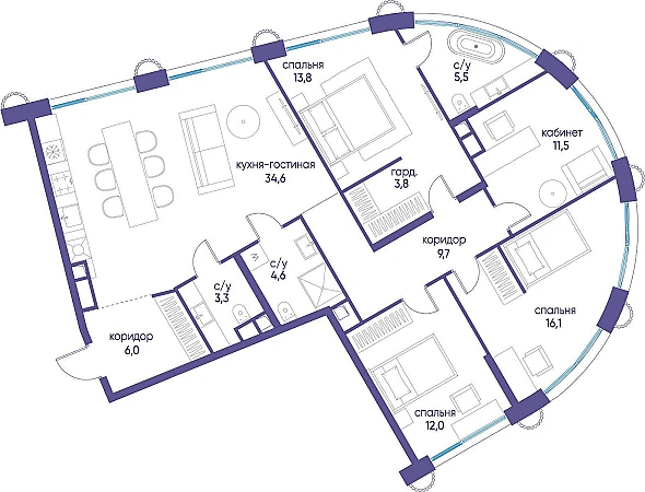 Продаётся 4-комн. квартира от застройщика: общая площадь 121.00 м, жилая м, кухня м, 10-й этаж, жилой квартал «Остров 7», корпус 7 (секция 2) . Срок сдачи: 3 квартал 2028 года.