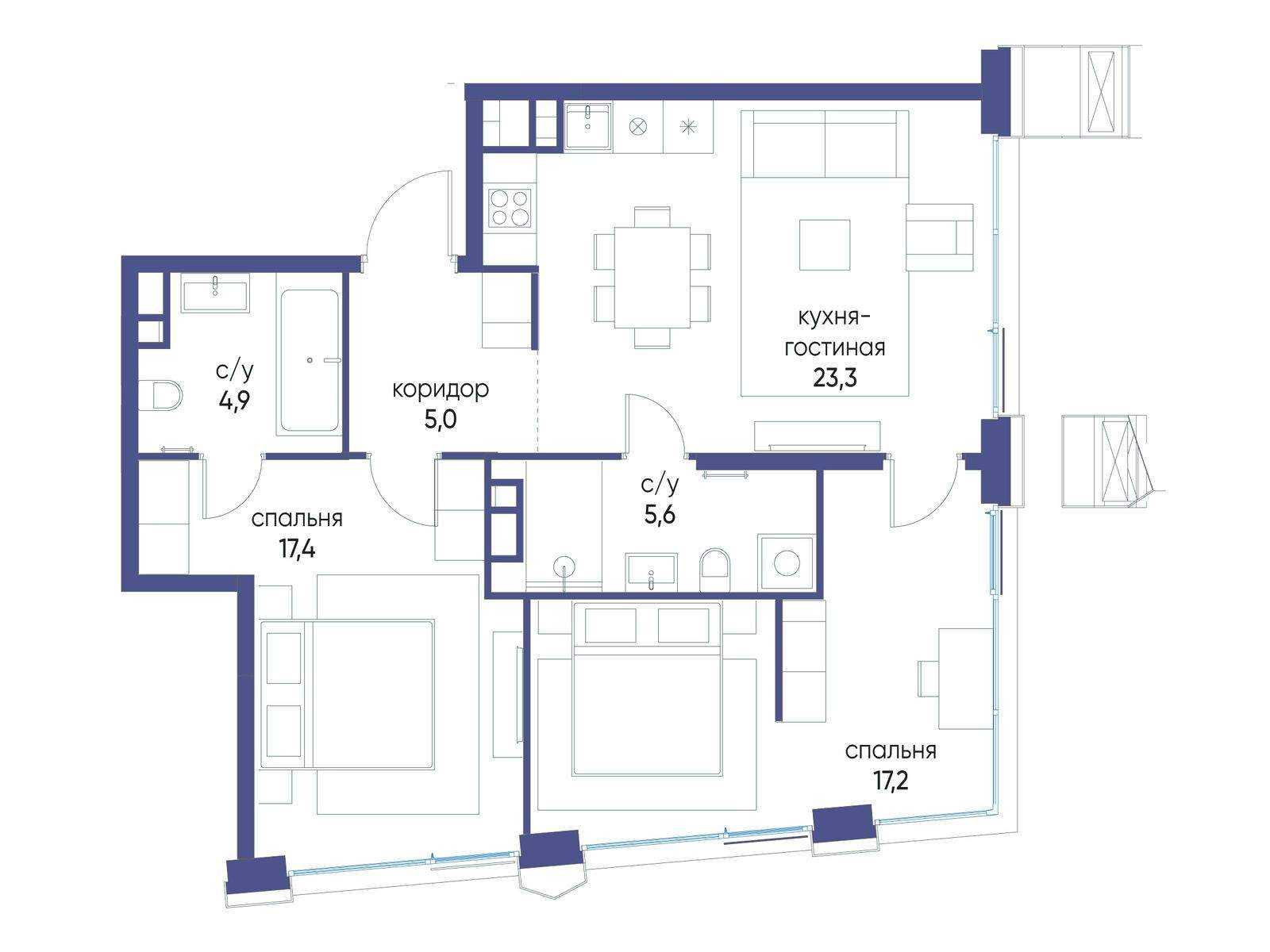 Продаётся 2-комн. квартира от застройщика: общая площадь 73.40 м, жилая м, кухня м, 19-й этаж, жилой квартал «Остров 7», корпус 7 (секция 2) . Срок сдачи: 3 квартал 2028 года.