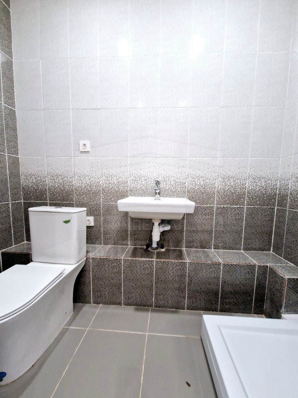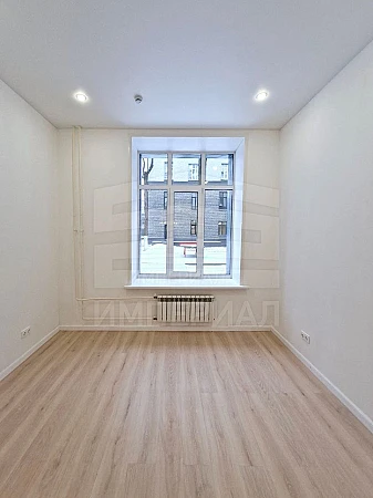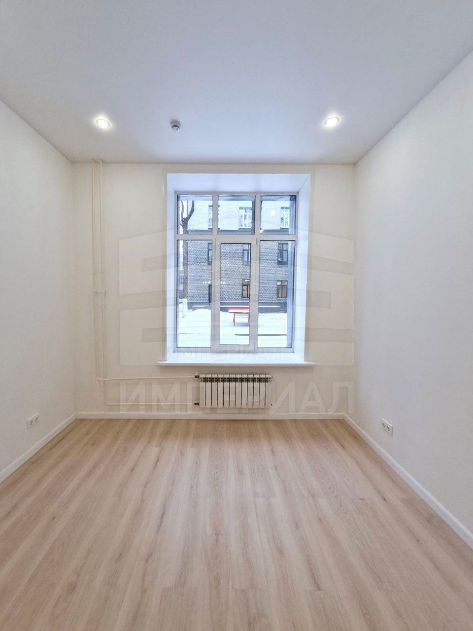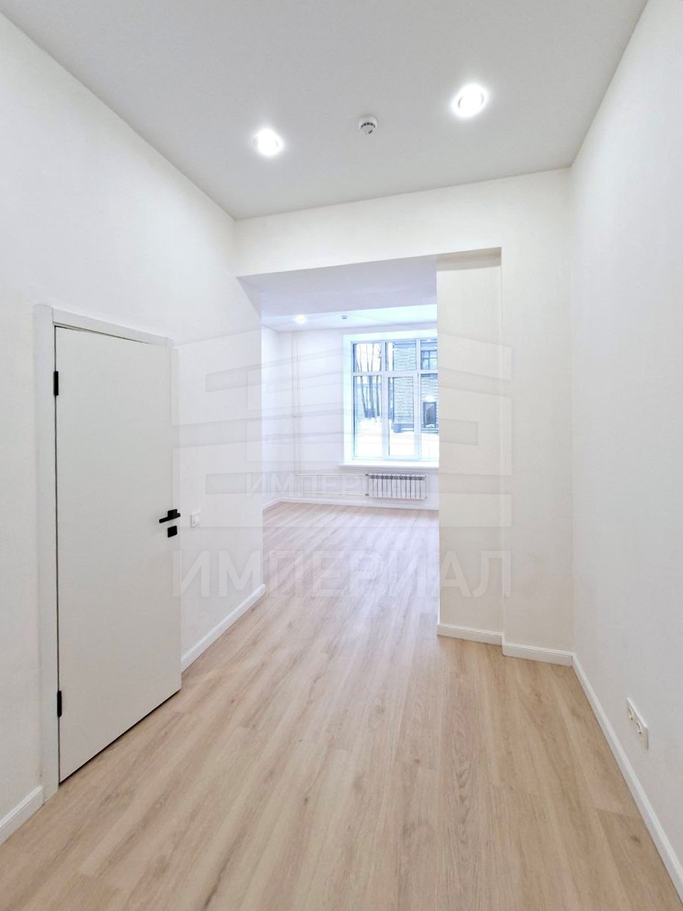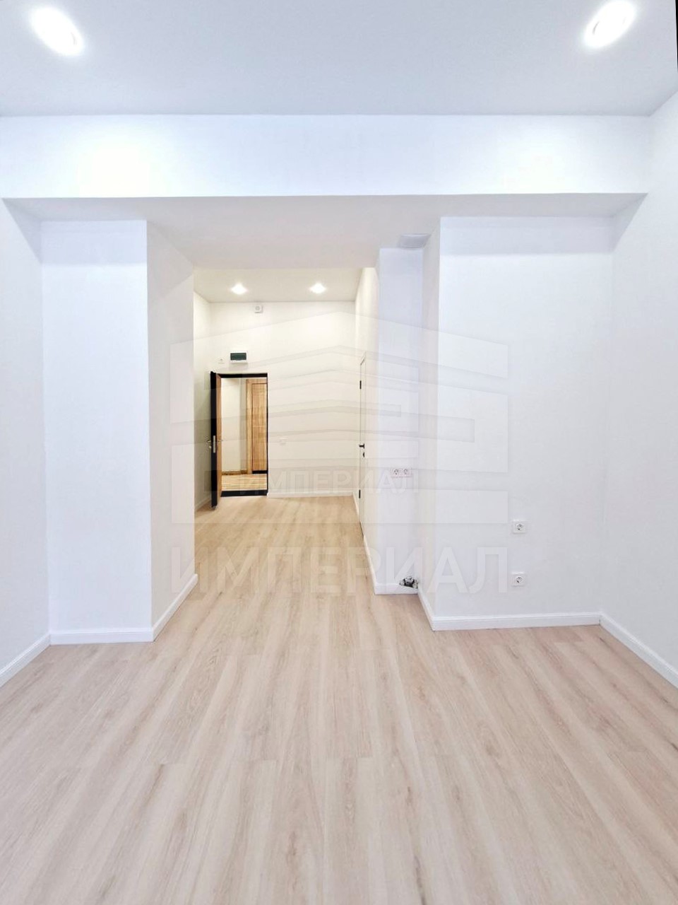 На стенах поклеены обои под покраску, на полу постелен ламинат с плинтусами и откосами. Есть вытяжная вентиляция в санузле и на кухне, выходы хв/гв, место под раковину на кухне. Кроме того, в помещениях уже есть выключатели освещения, розетки для бытовой техники и роутера, а также сделаны закладные для оптоволокна для интернета.
