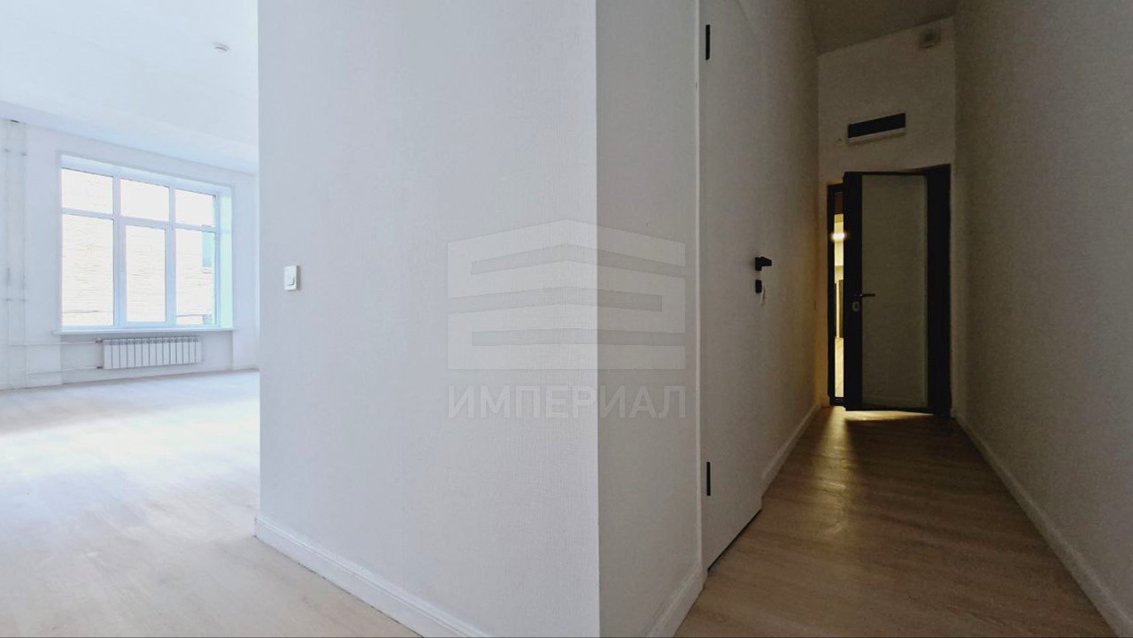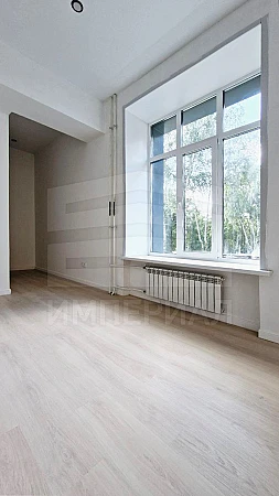 На стенах поклеены обои под покраску, на полу постелен ламинат с плинтусами и откосами. Есть вытяжная вентиляция в санузле и на кухне, выходы хв/гв, место под раковину на кухне. Кроме того, в помещениях уже есть выключатели освещения, розетки для бытовой техники и роутера, а также сделаны закладные для оптоволокна для интернета.