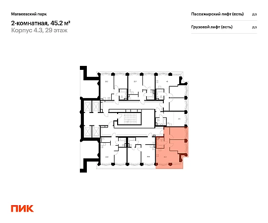 Продаётся 2-комн.квартира площадью 45.20 кв.м на 29 этаже 31 этажного дома (Корпус 4.3, секция 3) проекта ПИК Матвеевский парк. Светлый просторный подъезд на уровне земли, функциональная планировка, большие окна, с отделкой.