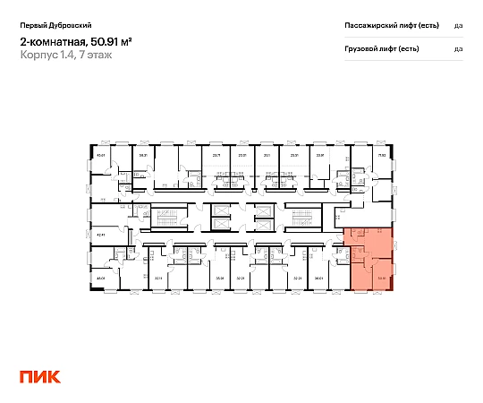 Продаётся 2-комн.квартира площадью 50.91 кв.м на 9 этаже 38 этажного дома (Корпус 1.4, секция 2) проекта ПИК Первый Дубровский. Светлый просторный подъезд на уровне земли, функциональная планировка, большие окна, с отделкой.