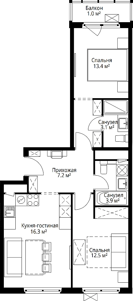 Купить 2к квартиру 65 м² в ЖК 1‑й Химкинский