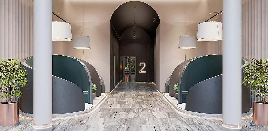 Когда в жизни происходит что-то удивительное и захватывающее, мы не можем удержаться от восторженного восклицания: «Это словно из фильма!» Жилой комплекс «Режиссёр» является поистине уникальным уголком. Этот объект идеально подходит для тех, кто стремится к написанию собственного сценария жизни.Проект входных групп создан архитектурным бюро Haast. В работах этого бюро чувствуется уважение к потребностям успешного жителя современного мегаполиса.Три башни объединены общим вестибюлем, оформленным в современном стиле. Монументальные скульптурные формы подчеркивают архитектуру пространства.Дизайн мест общего пользования является продолжением архитектурной концепции зданий. Он выполнен в светло-серых тонах с акцентами в виде медных элементов, перекликающихся с фасадами.В холле каждой секции стоят уютные кресла. Идеальное место, чтобы подождать того, кто слегка задерживается, или обсудить премьеру сезона с соседями.Детская игровая комната — отличный выход при плохой погоде.В центральном холле есть специальная зона коворкинга, где можно спокойно посидеть с ноутбуком или даже устроить совещание.Для встреч с друзьями и проведения мероприятий подходит лаундж-зона. При желании можно объединить лаундж-зону с детской игровой и устроить общий праздник для детей и взрослых.