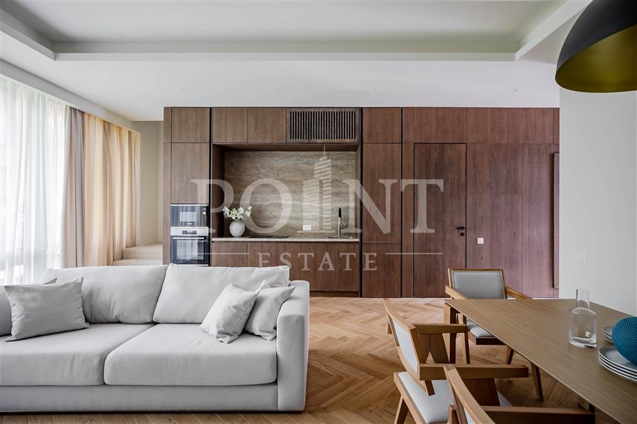 Лот: 115475. В аренду на длительный срок предлагается новый современный таунхаус общей площадью 170 м2, расположенный на участке 2 сотки в премиальном жилом комплексе таунхаусов "Футуро парк". В нем есть все необходимое для комфортного проживания. На первом этаже находится: просторная гостиная, объединенная с кухней и обеденной зоной, кабинет, санузел, холл, прихожая. Второй этаж включает в себя холл, две спальни с санузлами, одна из которых со своей гардеробной. Мансарда отведена под постирочную и комнату отдыха. КП представляет собой идеальное сочетание современного комфорта и природной гармонии. Территория поселка представляет уютное место с парком, спортивными площадками и детскими игровыми площадками.