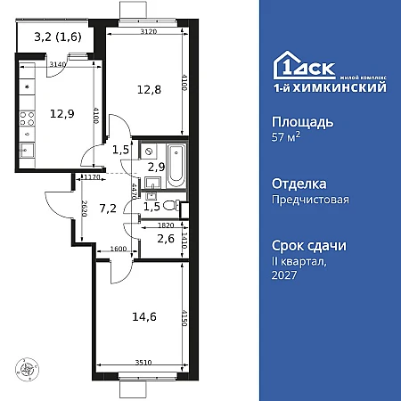 Купить 2к квартиру 66 м² в квартале Белый Grad