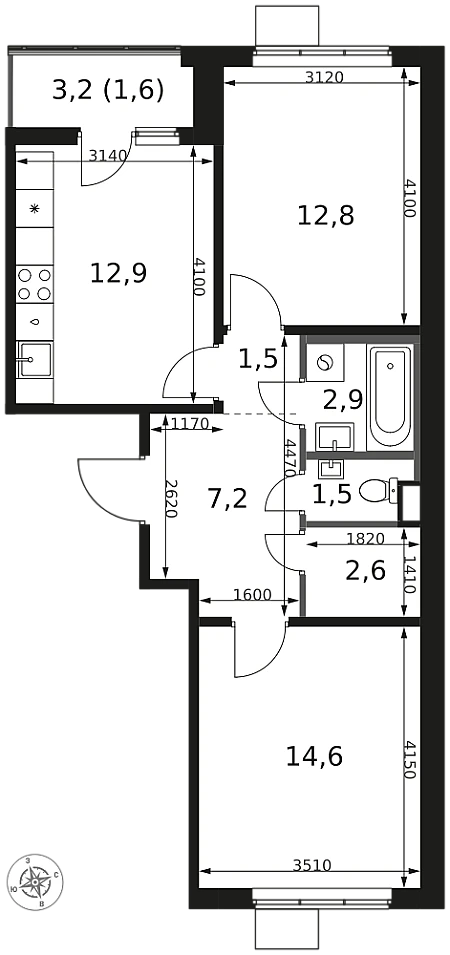 Московская обл, г Мытищи, д Челобитьево, к 12, кв 1