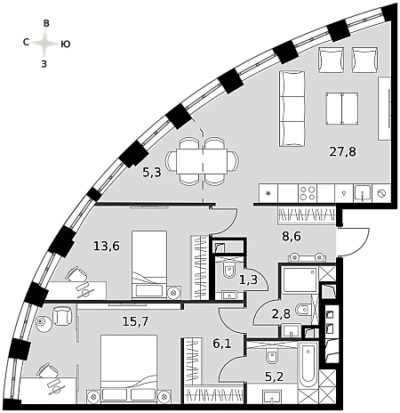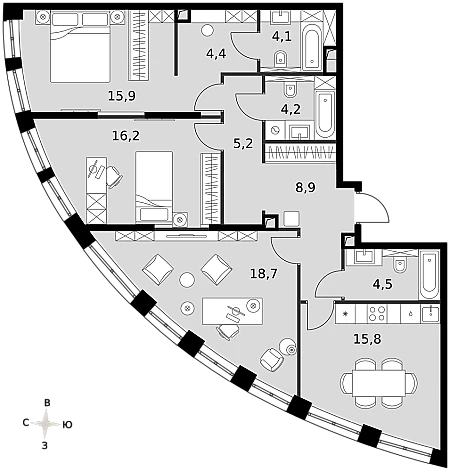 Купить 2к квартиру 86 м² в ЖК Sydney City (Сидней Сити)