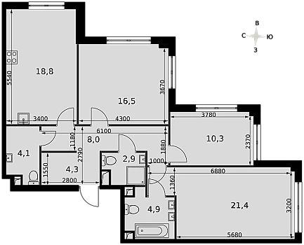 Купить 2к квартиру 101 м² в ЖК Монблан