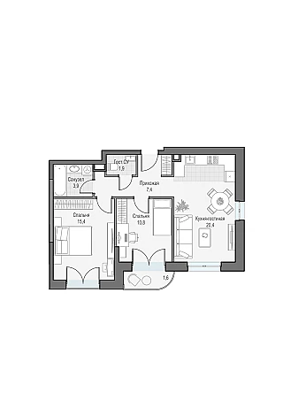 Купить 2к квартиру 69 м² в квартале квартал на воде