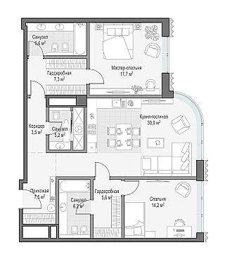 Купить 2к квартиру 91 м² в ЖК Тишинский Бульвар