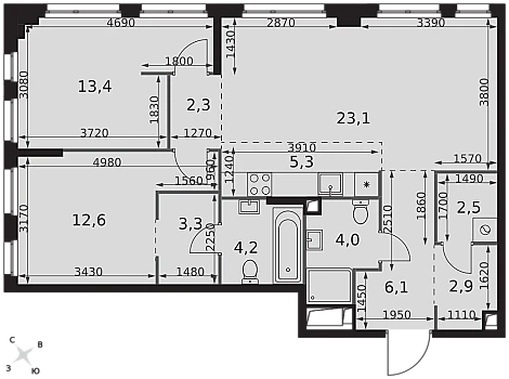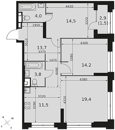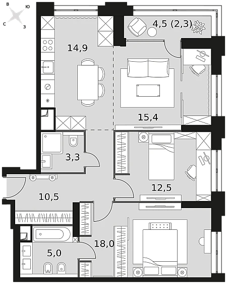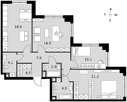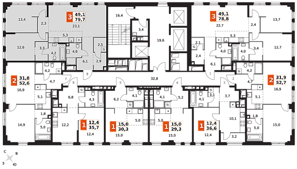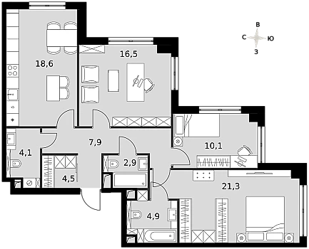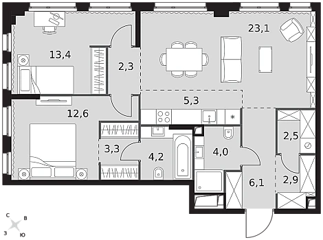 Купить 2к квартиру 74 м² в ЖК Sezar City