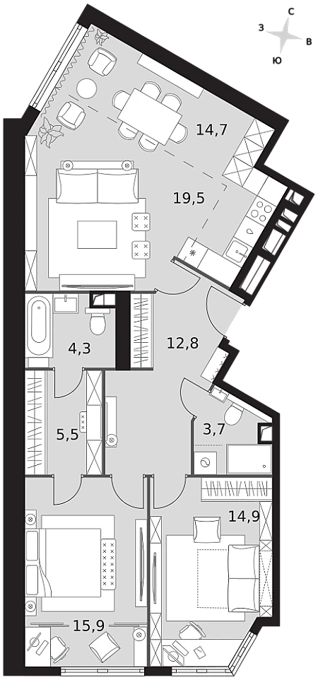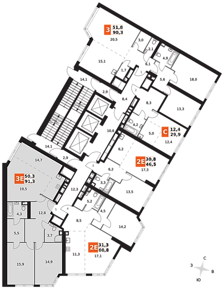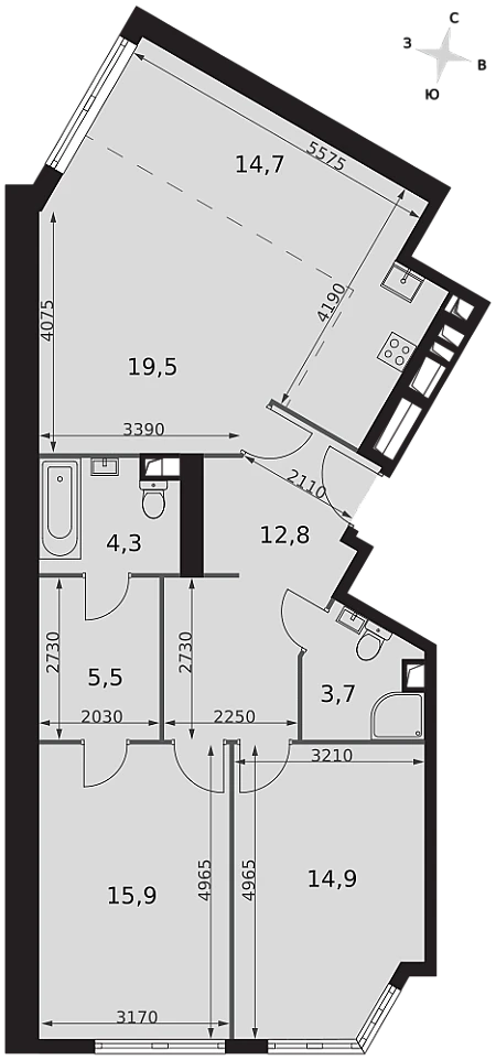 Купить 2к квартиру 83 м² в ЖК Sezar City